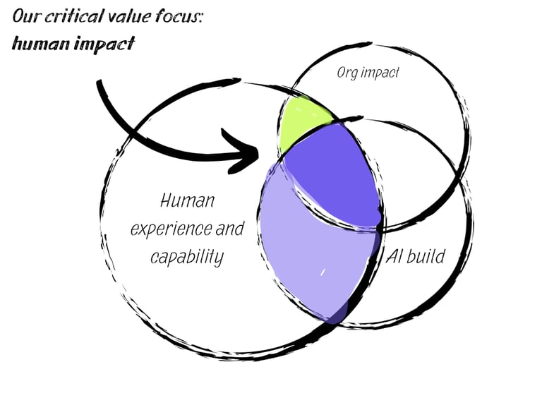 At Thriving Humans, we design and deliver AI transformation programs, making sure that technology is applied in ways to enhance human experience, amplifying human connection and innovation.